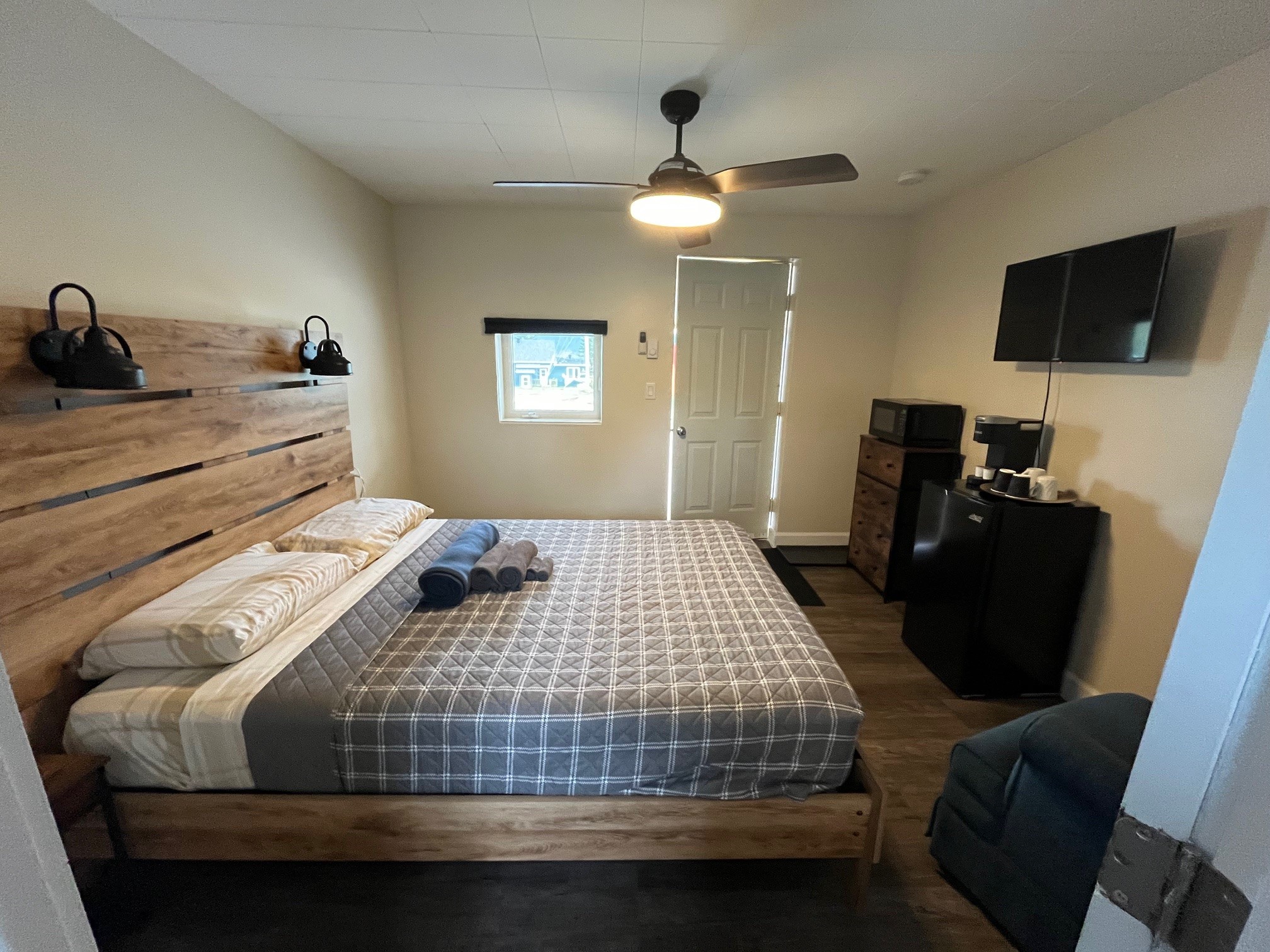 | Douce nuit (6) | 115 $ | 125 $ | 775 $ | Lit queen, futon double, sdb | Cafetière Keurig (2 capsules), Micro-onde, Mini frigo | |